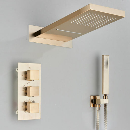 - or Shower: Thermostatic Wall Mounted Waterfall Rainfall Shower Head System in Black